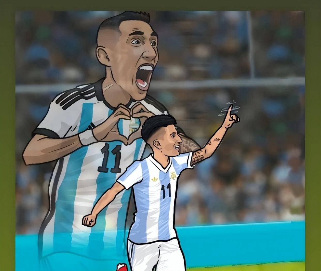 23岁的阿尔马达在对阵乌拉圭的比赛中打进了一脚精彩的世界波,迅速成为球迷们瞩目的焦点。他是阿根廷射手,本赛季被租借到法甲球队里昂。在短短的8场比赛中,他打进了1粒进球并送出了2次助攻。此外,他还在国家队助球队赢得了一场重要的比赛胜利。赛后,已退出阿根廷国家队的迪马利亚发文庆祝,配图是他与阿尔马达的漫画照片。值得一提的是,阿尔马达身穿的是迪马利亚离开后所留下的11号球衣。