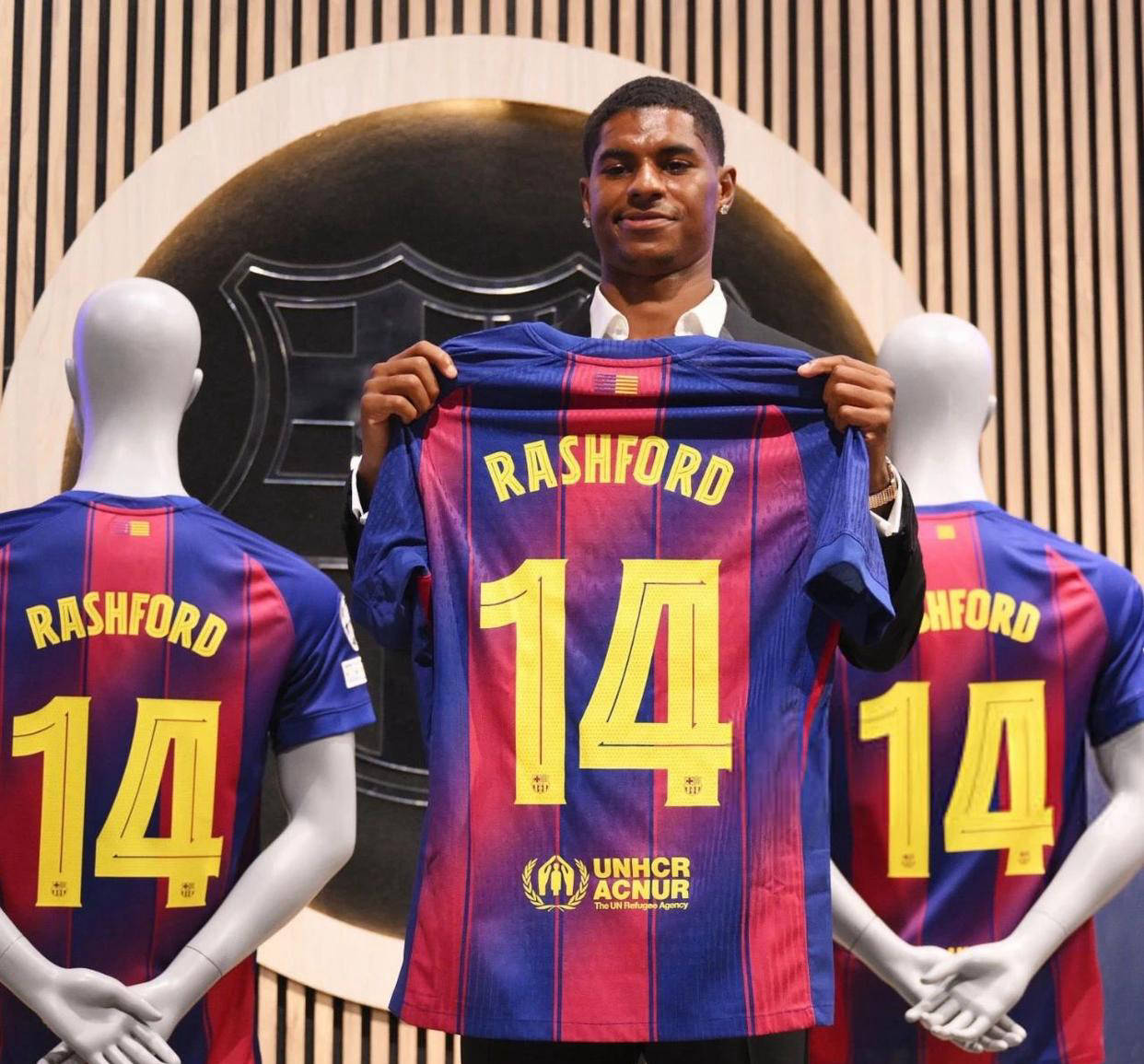 在接过巴萨主席拉波尔塔递来的红蓝相间的14号战袍时,拉什福德激动地说:“我非常兴奋,巴萨是每位球员都梦寐以求的俱乐部。在过去的几天里,他们让我倍感温暖,大家对我都异常友好。我一直热爱观看精彩的比赛,相信我会在这里度过快乐的时光。巴萨就像一个大家庭,有许多优秀的球员,我梦想为巴萨赢得欧冠。”